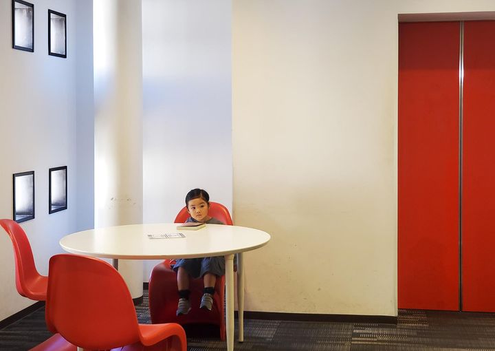 娘は赤の椅子のこちらの席が気に入った様子でした。