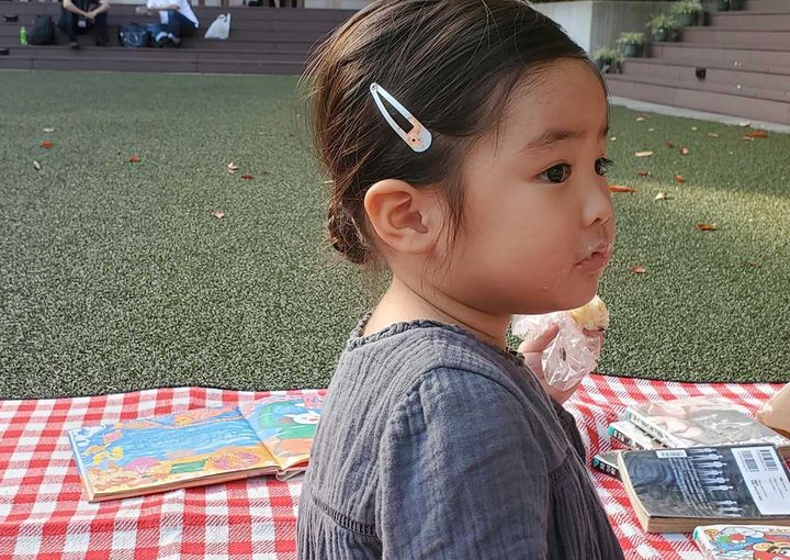 この日は《フリップアップ》のパンを買ってきました。娘はお気に入りのきな粉のパンをお外で食べて喜んでいました。
