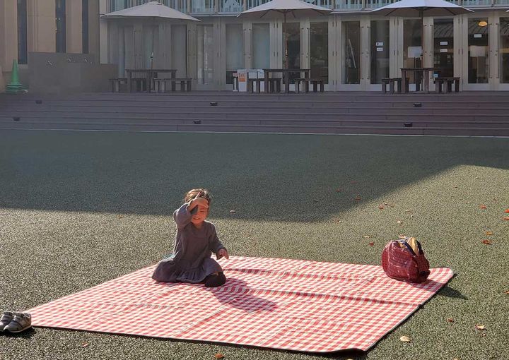 外出もOK。お気に入りのおかしを片手に中庭でピクニック