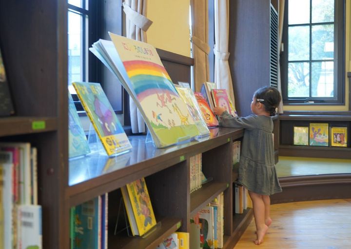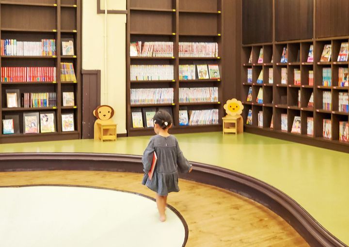 一階には「こども図書館」のフロアがあります。こちらには絵本が3000冊も設置されており、子どもが喜ぶ空間作りがされていて、「めっちゃ良いなぁ」と思いました。娘もテンションがあがりいろんな絵本を楽しんでいました(子ども図書館の絵本も施設内で持ち出し可能です)。