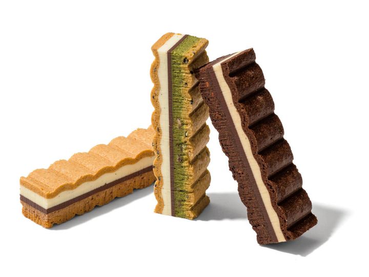 パティシエとショコラティエールによる京都のパティスリーRAU(ラウ)。いつか見た情景をスイーツで表現しているそう。フランスと 京都の瓦屋根の風景から着想を得た波形がユニークなNami-Namiは、プレーン・ショコラ・ゴマの波形サブレに、軽やかなクリームと濃厚な板チョコレートをサンド。中南米コスタリカ産の有機カカオを使うこだわりも。