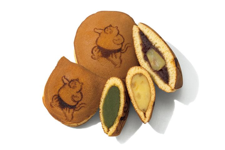両国にある老舗和菓子店のどら焼きは、漫画『すもうねこ』の焼印がキュート。2枚の生地であんをサンドしたすもうねこ(写真上)は、栗入りつぶあんとつぶあんの2種類が、楕円に焼いた生地を折って包んだねこちゃんこ(写真下)は、栗入りこしあんのほか、レモンあんや抹茶あん、夏限定のパイナップルあんも。定番はもちろん、フルーティーなあんの意外な相性のよさが人気です♡