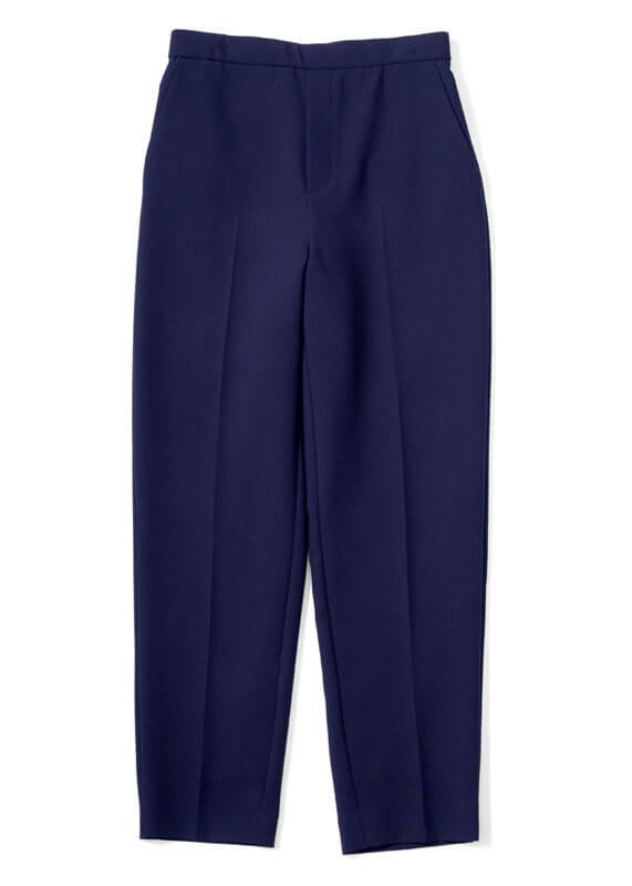 無駄のないテーパードラインのすっきりとしたシルエットですらっと細見え。気品溢れるネイビー。