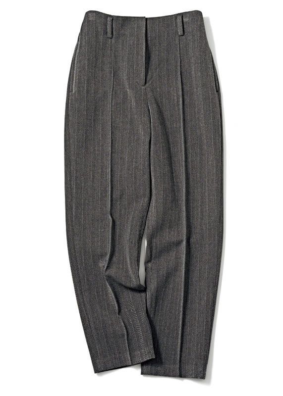 リッチシックなヘリンボーン素材&美脚ラインで冬のパンツルックにぐっと差をつけて。