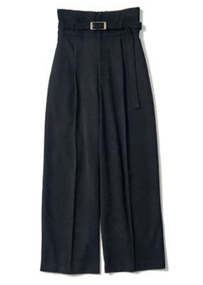 起毛感あるベロア素材で見た目も暖かく。ハイウエストを強調するベルトつきで、トップスをインするだけでスタイル美人に。
