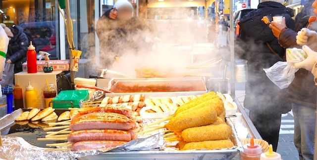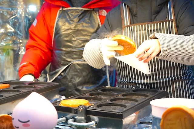 明洞に行ったらぜひ楽しんでほしい屋台街。10ウォンパンも探してみてくださいね!