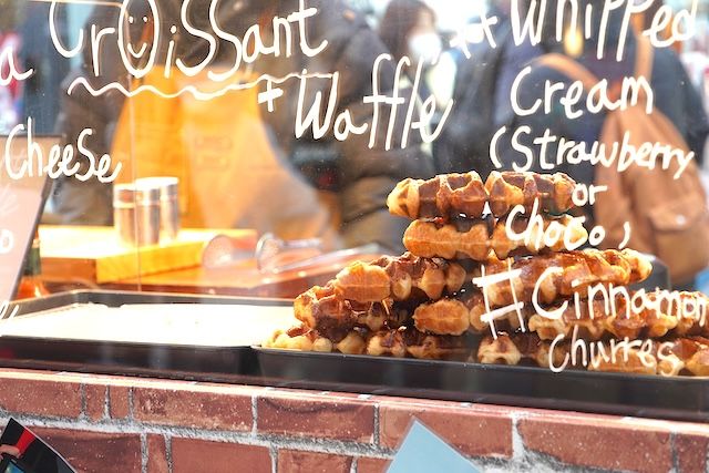 日本でも話題となったクロワッサン生地のワッフル「クロッフル」もありました。
