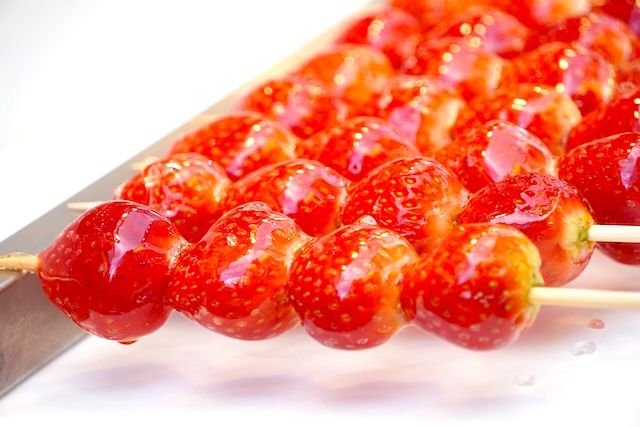 いちご飴はキラキラの宝石みたいでいつまでも見ていられます。