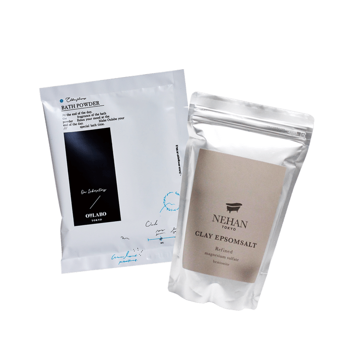 〈右から〉クレイエプソルト 800g 3,520円/NEHAN TOKYO バスパウダー(浴用化粧料)50g 1,320円/OULABO TOKYO