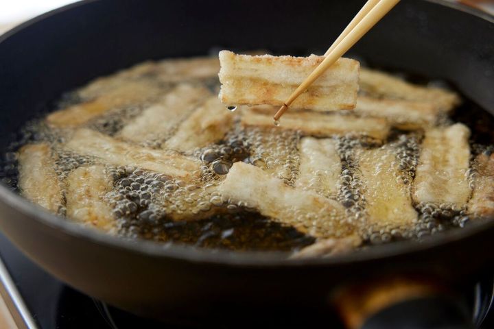 (2)ごぼうを揚げる
