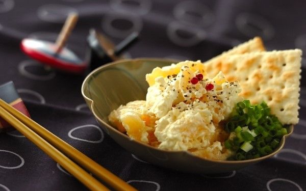 ゆで卵にひと手間加えて、おしゃれなオードブルに。ゆで卵の黄身にカッテージチーズやマヨネーズなどを混ぜ、ホイップクリームのように絞ります。仕上げにイクラとオリーブをトッピングすれば、見た目も豪華です。