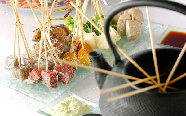 おせちの煮しめ、牛ステーキ、野菜などを竹串や金串に刺して、みんなでワイワイ串揚げを楽しみましょう。こちらのレシピではアボカドソースとタバスコ風味ソースの2種類を用意。お好みのものをつけて召し上がれ。