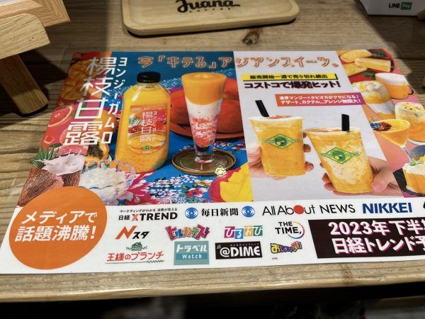 ヨンジーガムロ(楊枝甘露)とは・・・ マンゴーやグレープフルーツなどの果物をタピオカ入りココナッツミルクやマンゴーソースと一緒にいただく香港発祥のスイーツを再現したドリンクで、2021年夏に台湾でめちゃくちゃ流行ったのですって。