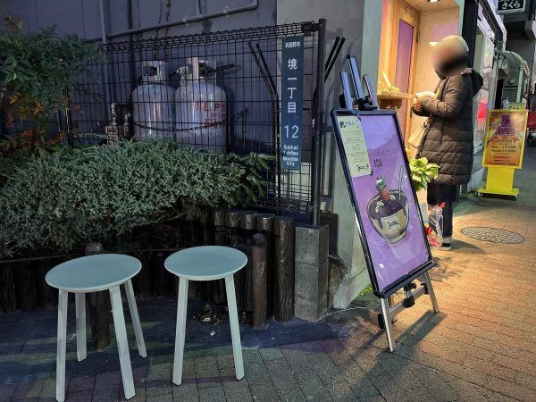 テイクアウト専門店ですが店舗横に椅子の用意もあります。