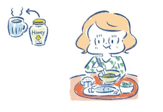 糖質が多い食事をとる人は、血糖値の乱高下がクセになっていることも。食間にはちみつドリンクで血糖値の下がりすぎを防いで。