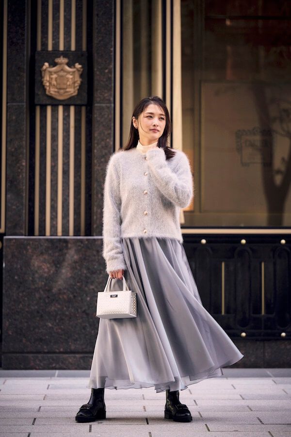 レディの定番、チュールスカートを洗練グレーで今年顔にアップデート