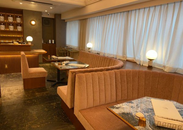 2階のコンセプトカフェの店内はピンクのソファーとゴールドの組み合わせが可愛い内装が魅力的です。