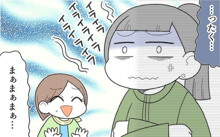 さとみの息子・けいすけとサッカーチームで一緒のゆうじくんのママ・明美は、ゆうじくんがミスをするとイライラして怒鳴りつけます。とても怖いと思っているさとみ。けいすけがシュート練習でゴールを決めるたびに「ナイスシュート!」と声をかけるのも気まずく、うまく応援できずにいました…。