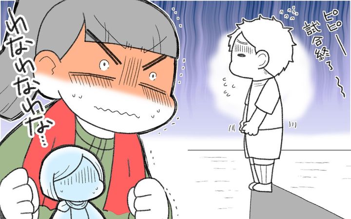 試合が始まると、ボールを取られてしまった、ゆうじくんに明美が激怒。あまりの恐さに、ゆうじくんは委縮してしまいます。そんな様子を心配するさとみは、息子の応援に集中できず…。