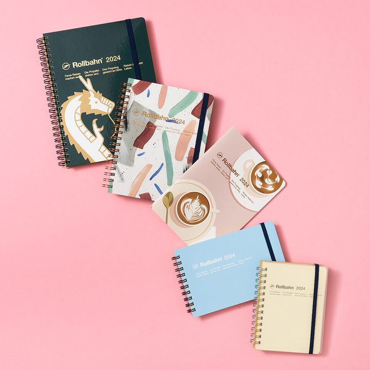 〈上から〉ダイアリー[ドラゴA5/マンスリー]¥1,980 ダイアリー[MOGLEA L/マンスリー]<直営店限定>¥1,650 ノートダイアリー[エカフェB6/マンスリー]¥825 ダイアリー[横型М/マンスリー]¥1,540 ダイアリー[クリアM/マンスリー]¥1,430(すべてロルバーン/デルフォニックス)