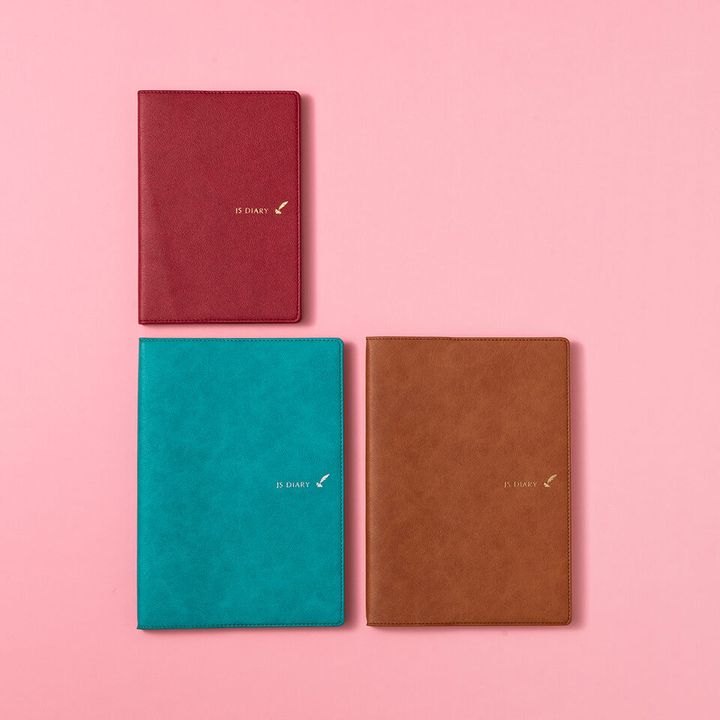 〈上〉ダイアリー[バーチカル B6(バーガンディ)¥2,970〈左下〉ダイアリー[マンスリー+ノート A5](ターコイズグリーン)¥3,080〈右〉ダイアリー[バーチカル+メモ A5](ココアブラウン)¥3,080(すべてJSダイアリー/渋谷ロフト)