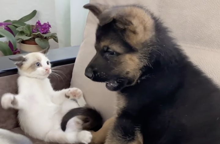 じゃれあいが可愛らしい子犬さんと子猫さんでした。