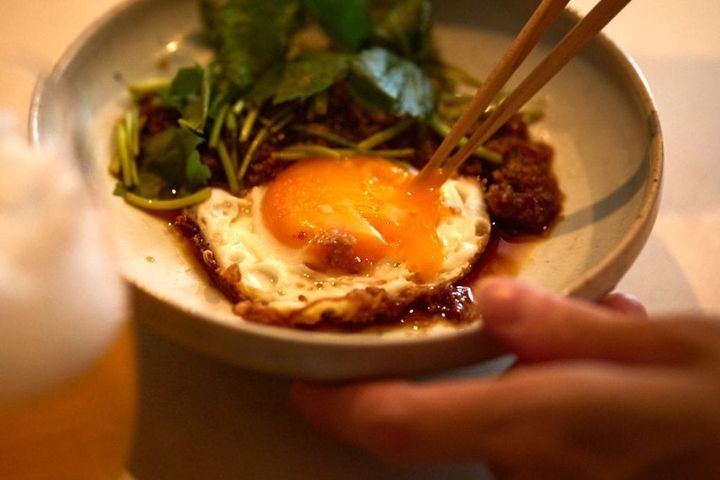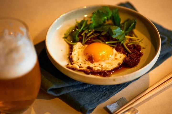 簡単なのにおいしい、気持ちも上がる。そんなレシピが人気の料理家・長谷川あかりさんに、疲れていても「いち・にの・さん」でパパッと作れるおつまみを教えてもらう連載。今回は「揚げ目玉焼きのおかか黒酢醤油がけ」です。