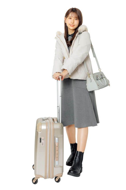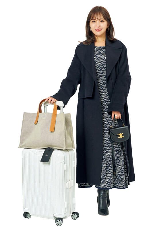新幹線に長時間座るのでシワが目立ちにくいスカートや、ひきずらないショート丈コートを選びます。
