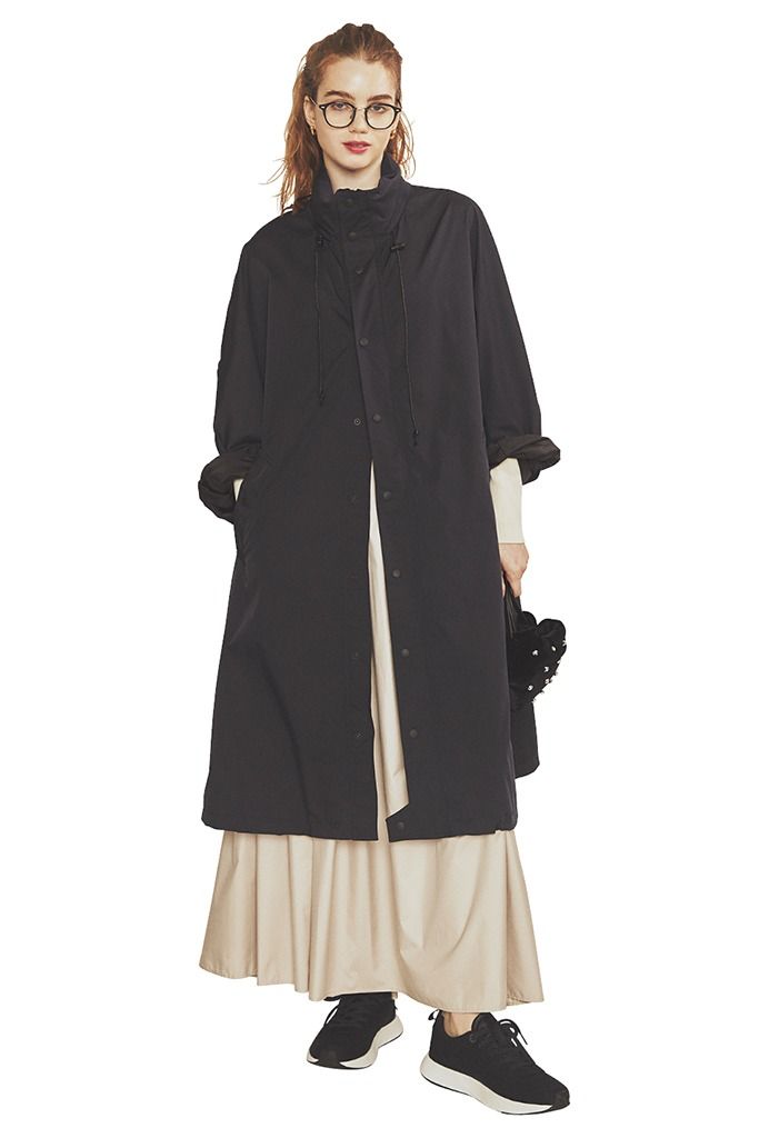 シンプルなコートスタイルにブーツでは表現しにくいアクティブなキレを加算