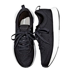 黒スニーカー 16,000円/オールバーズ アッパーはコットンでナチュラルな風合い。ソールまで黒だとちょっと重い、そんなときのアクセントにもなる白のソール。