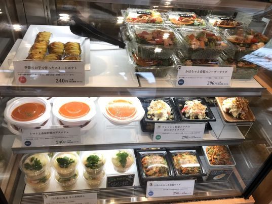 惣菜・日替わり弁当・お野菜・野菜スープ・スイーツ等が販売されていました。農家さんの採れたての野菜や全国各地から取り寄せたこだわりの肉や魚を用いて作られているそうです。