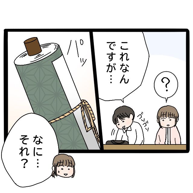 「?」と不思議そうに見守るカオリさんが目にしたものは・・巻き物?のようなもので・・