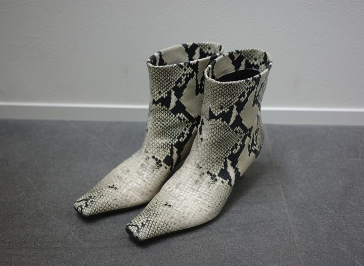 「ブランドの世界観がとても好きで、シューズは8割がケイトです。ヘビモチーフは昔から好きなのですが、このヘビ柄は上品な色合いが気に入っています」KHAITEのブーツは本人私物