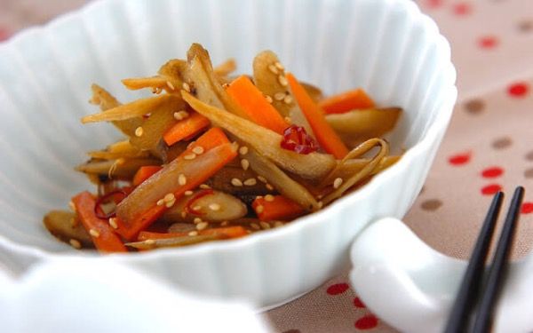 甘辛い味付けで、ごはんが進む定番おかず、きんぴらゴボウのレシピです。フライパンで炒めて味付けするだけで出来上がり。ゴボウは食物繊維たっぷりなので、野菜が足りていないと感じたときにおすすめです。