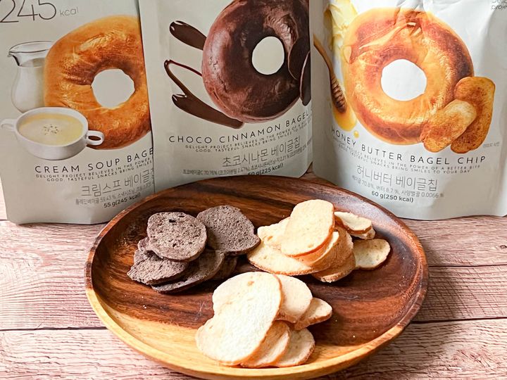 韓国で入手困難になっている人気のお菓子「ベーグルチップ」。低温熟成して作られたベーグルを薄くスライスして、バターを塗って焼いたスナック菓子。フライにするのではなく、焼いているのでヘルシーに作られています。軽い食感でサクサクと食べられる、ヤミツキスナックです。