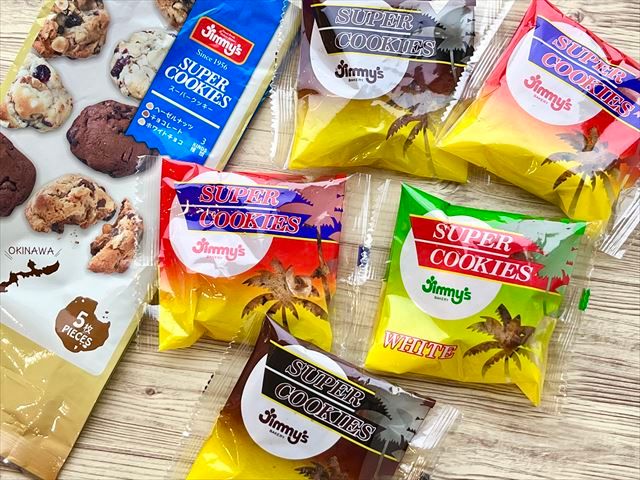 アメリカンなお菓子やケーキがそろう沖縄のスーパー「Jimmy's(ジミー)」の人気商品「スーパークッキー」。ナッツやレーズン、チョコチップなどが入った、リッチ感あふれるクッキーは、沖縄土産としてもおすすめ。しっとり食感でナッツやドライフルーツがぎっしり、満足感たっぷりのお菓子です。