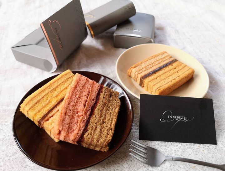 東京・清澄白河の菓子店の新業態「EN VEDETTE LUXE(アンヴデット リュクス)」。洗練されたパフェやクレープのデザートに、ケーキや焼き菓子など東京の新しい手土産として贈りたいものばかりです! 四角いバウムクーヘンという少し変わった形の焼き菓子「リーヴルクーヘン」(単品357円~)。アーモンドとバターが香るバウムクーヘン生地で、真ん中に、果汁を煮詰めて甘く固めたパートドフリュイを挟んでいます。