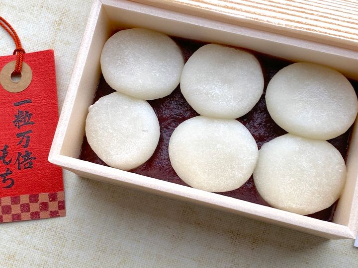 榮太樓總本鋪で一粒万倍日(いちりゅうまんばいび)に合わせて販売されるレアな和菓子「一粒万倍もち」。毎回完売、縁起がよくて、見た目も可愛くて、しかもちょっと驚くくらいおいしい。餅玉の絶妙な塩味と旨味、さらにこしあんのなめらかさとこれ以上も以下もないという塩梅の甘みに驚きました。縁起もよく、手土産にしたら感激されそうな特別な一品です。