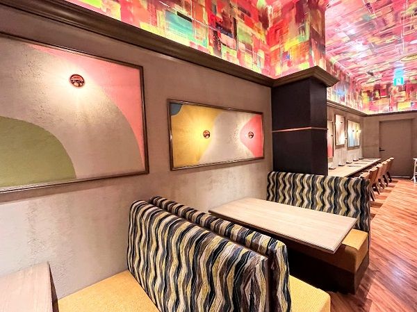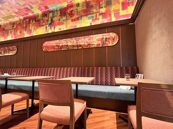 カラフルで重厚感のあるとても素敵な内装デザインです。大人の雰囲気があり、ときめきつつも、しっとりと寛げる空間です。