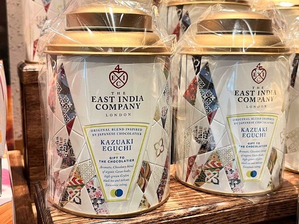 麻布台ヒルズ限定キャディ缶の紅茶も素敵です。デリーモと東インド会社のコラボのオリジナルブレンドティーです。「ショコラティエの贈り物」3,950円
