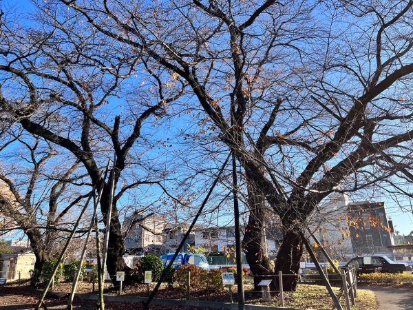 中央線立体化の際に移植された、樹齢大きな桜の木