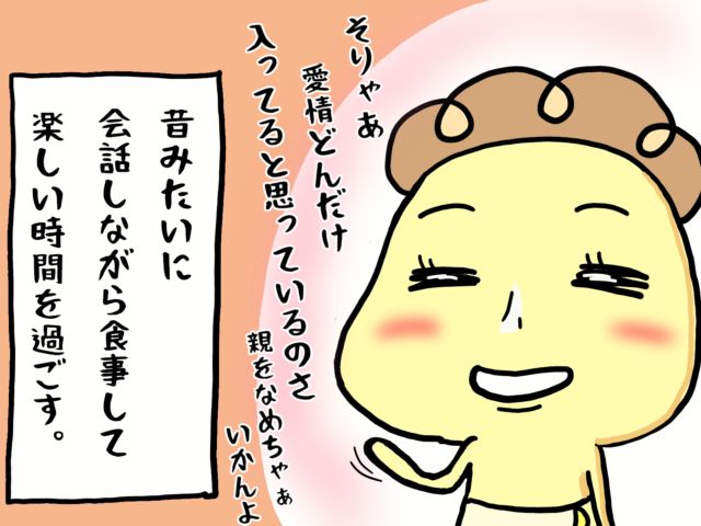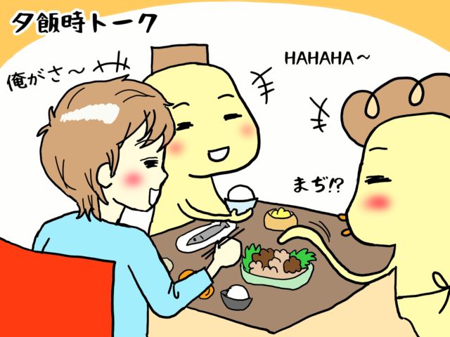 団らんの中の会話から、てる子さんは次男くんの生活の様子がわかります。