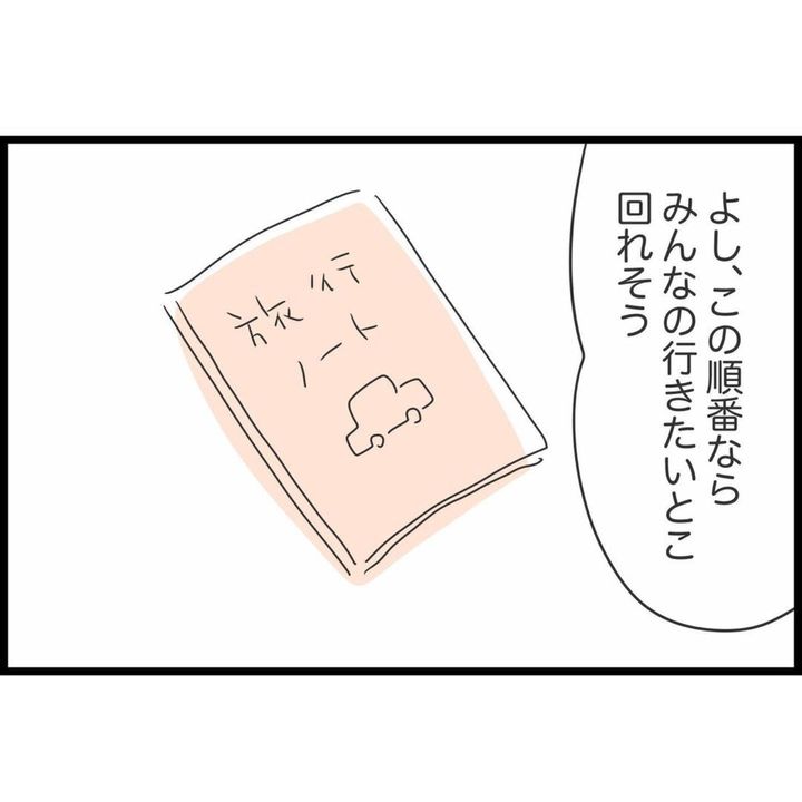 すみれさんの車にはカーナビが付いていないので、事前にしっかりとルートを確認する必要があります。それぞれが行きたい場所を効率よく回れるように、旅行ノートを作って計画を立てるすみれさん。