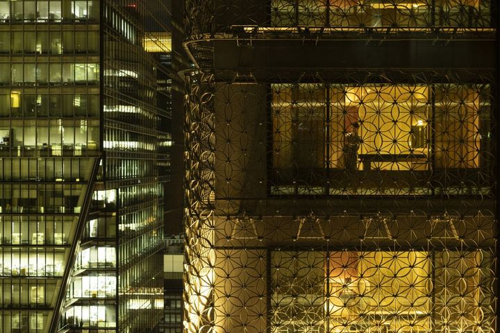 東京・大手町、地下2階、地上17階、“塔の日本旅館”と称される「星のや東京」は、ここが都会であるということを忘れてしまいそうな、畳敷きの⽞関、伝統的な和室や各階のお茶の間ラウンジ、最上階の温泉といった空間が魅力。