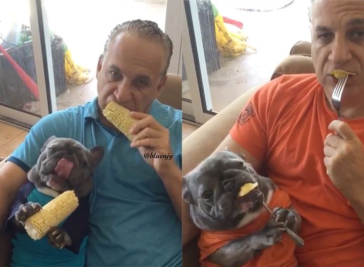 飼い主と犬は似るって言うけど、服までお揃いの仲良しコンビ!