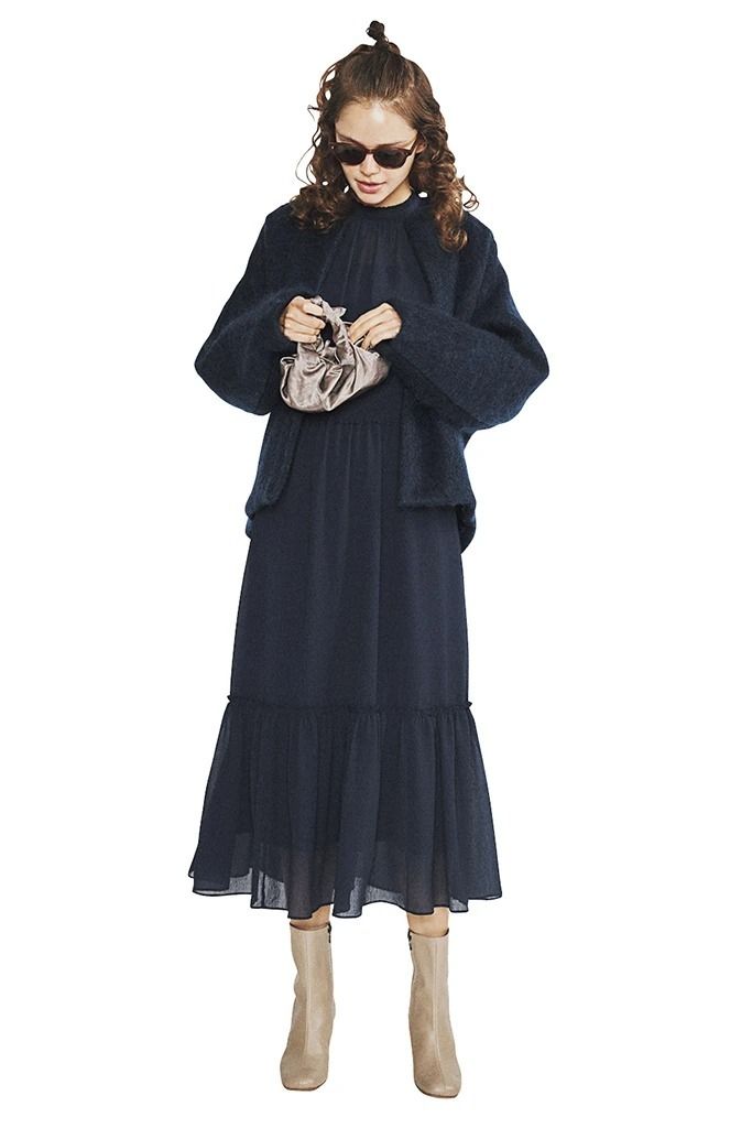 低めのヒールでも縦長のラインで脚をすらりと見せられる、ロングブーツ。脚の形を拾わない程度の筒が細い形で選ぶと、スカートのすそからのぞいた際に足首が太く見えず、スキニーなどをINしたときも締めつけもなし。