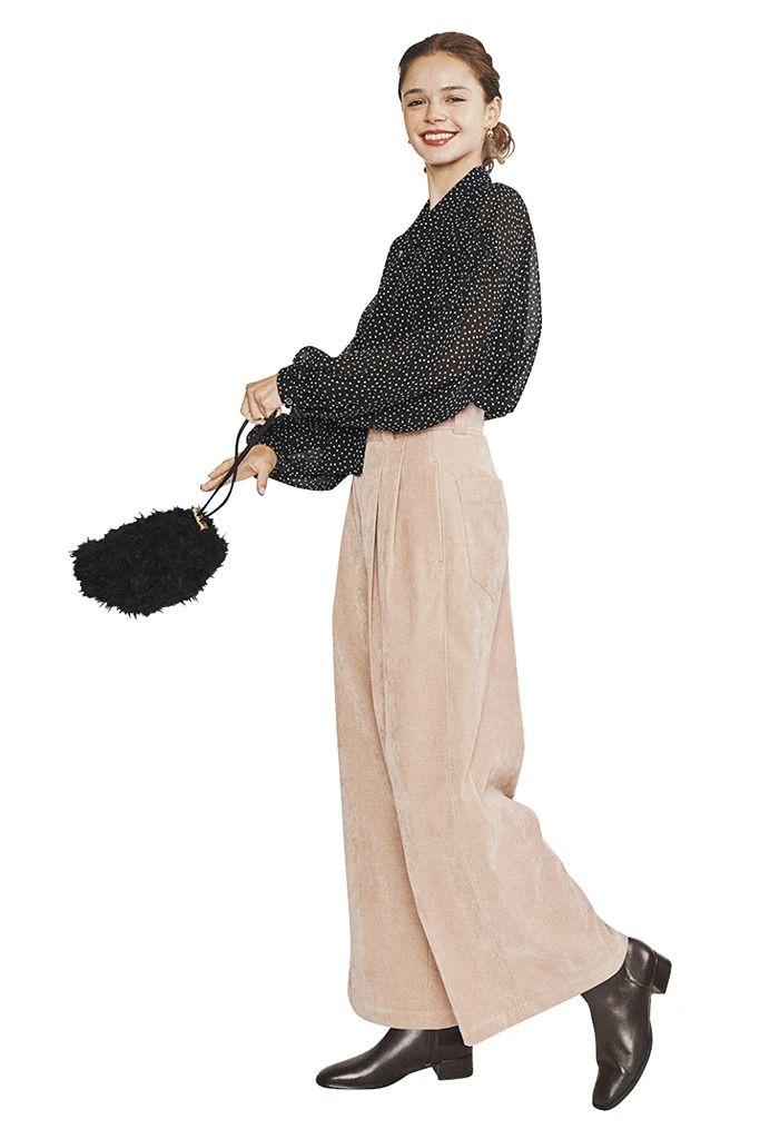 脚の形に合わせてふくらはぎ部分がすっきりとしているから、ワイドパンツをかぶせた際もラインをくずさずキレイなまま。新たな1足を買わずして、異なる雰囲気を堪能。