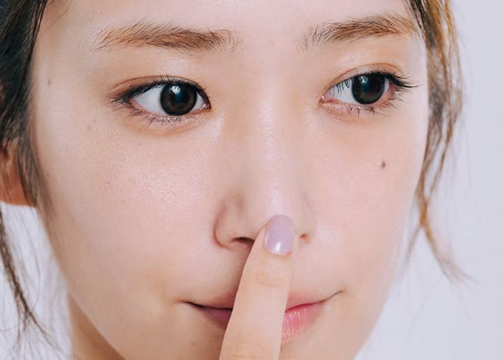 ヨレやすいから厚塗りしたくない小鼻。赤みを相殺するグリーンの下地を、薄く仕込むだけで悩みが解消される。顔の中心の色ムラが薄れることで、肌全体の透明感もアップ。