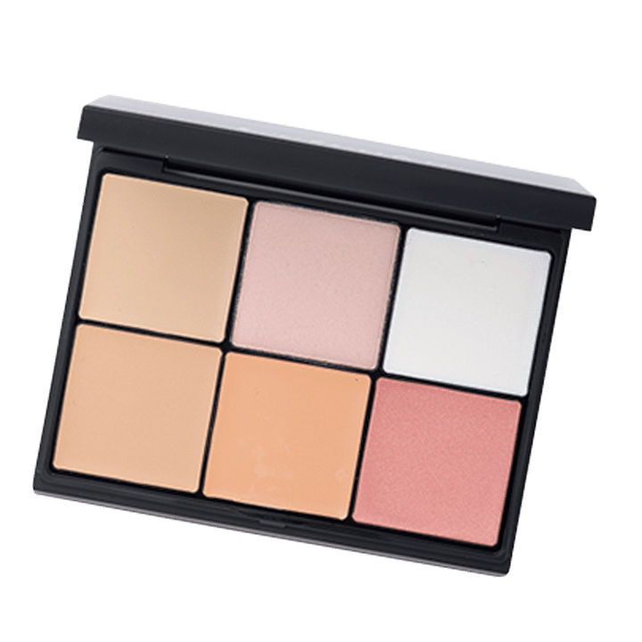 6種セットの多機能パレット。透明な薄膜をつくる右上でテカリと毛穴を補正。