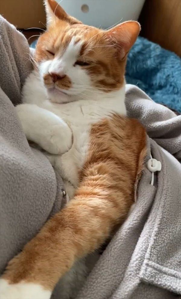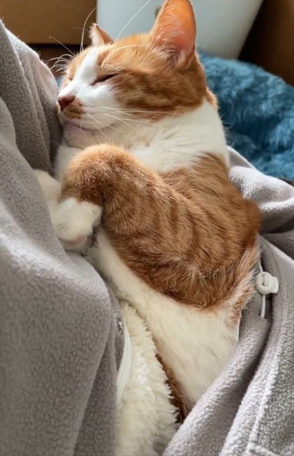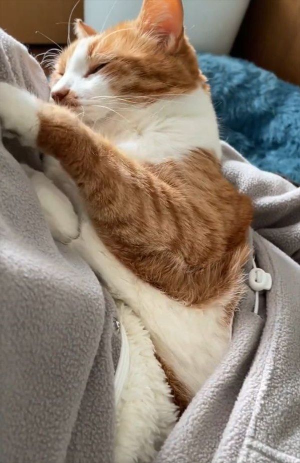 3. パーカーのポケットに猫を入れたら・・。至上の悦びを伝える映像がかわいいし羨ましいと話題に!